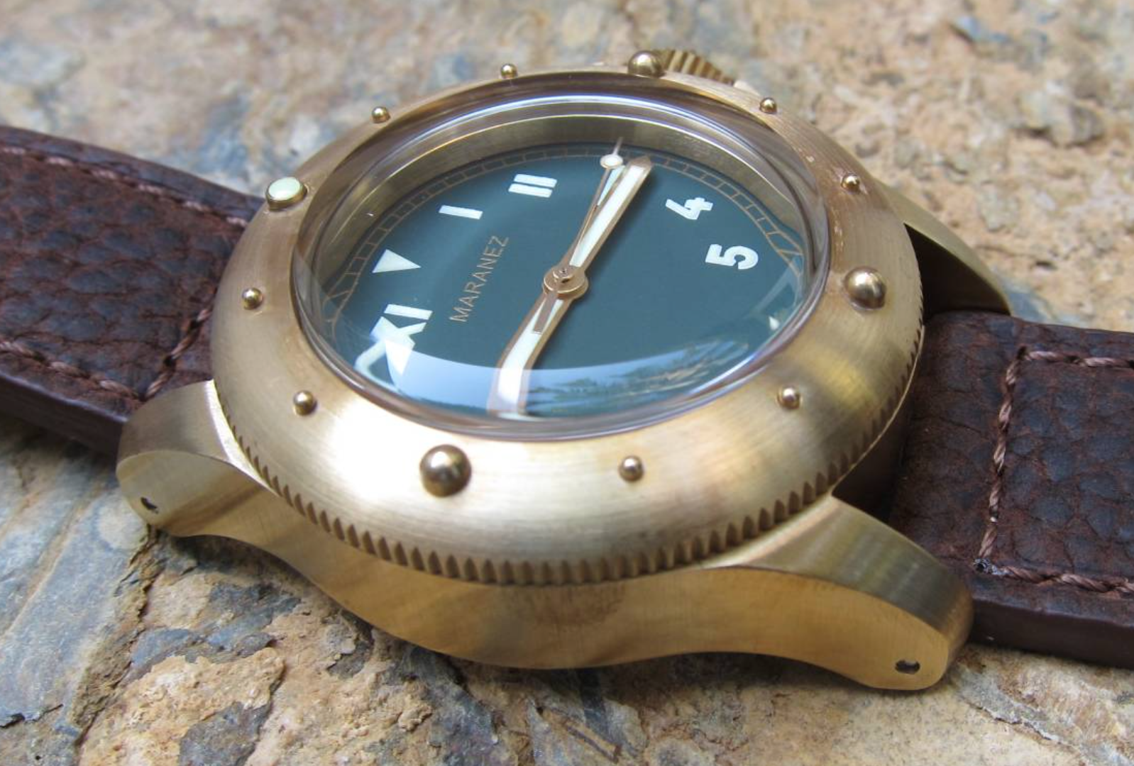 Bezel: 120 clicks brushed brass with lumed pin at 12