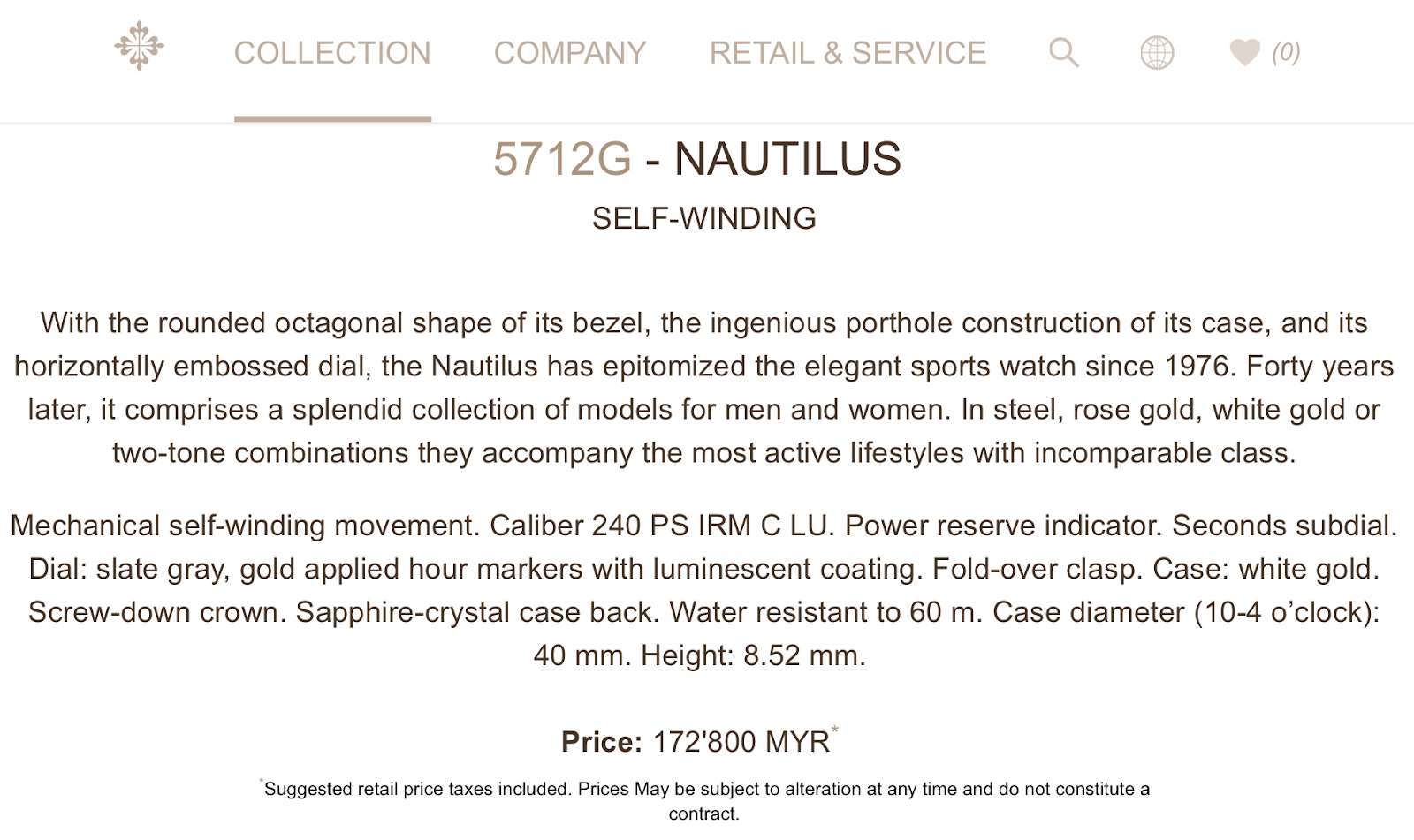 Recently, I was informed that a collector had recently purchased a 5712G-001 in Nov 2017, but wanted to flip it in pre-owned state at a discount. This Nautilus would refer to the white gold piece with complications, and retails at RM172k. This was how it looks like :